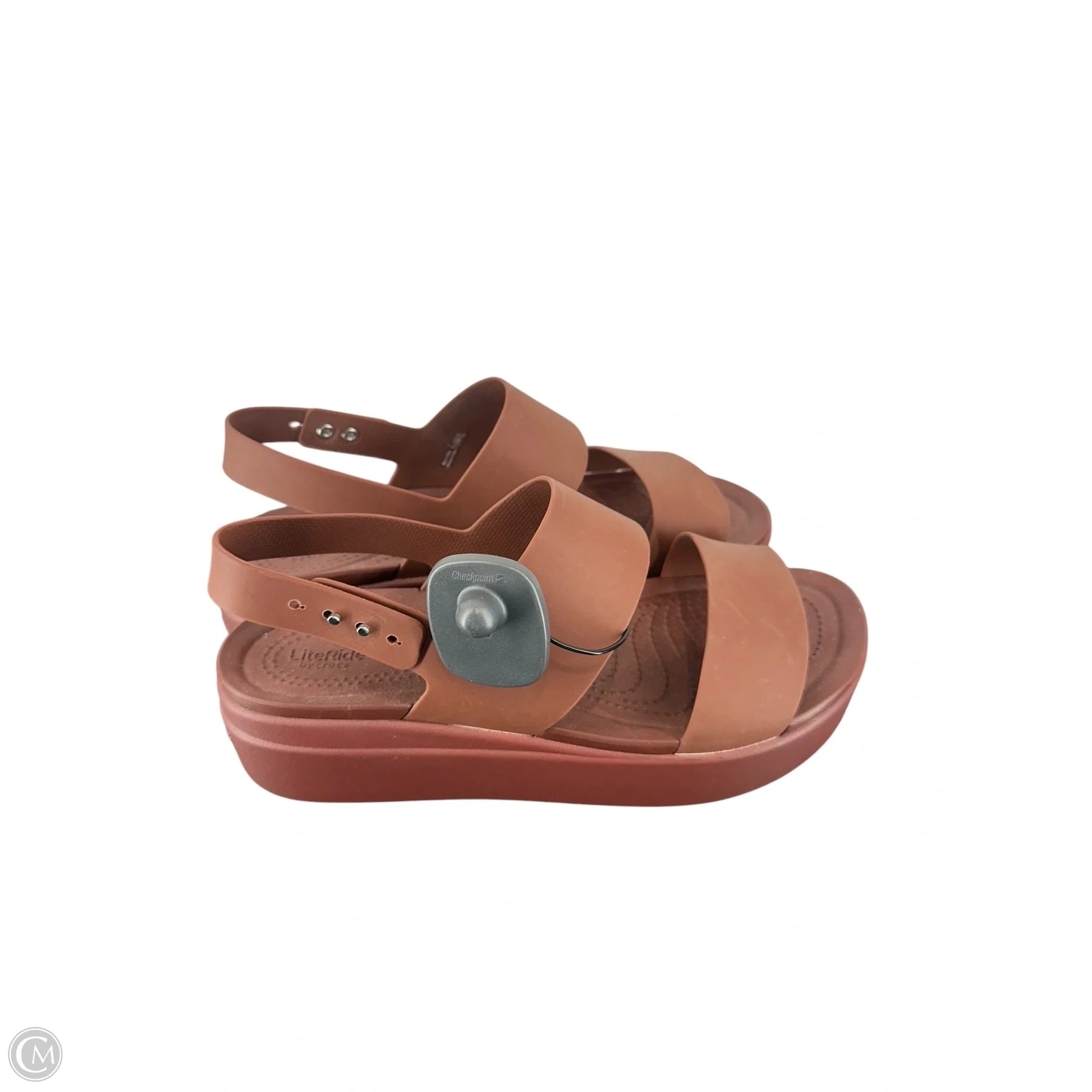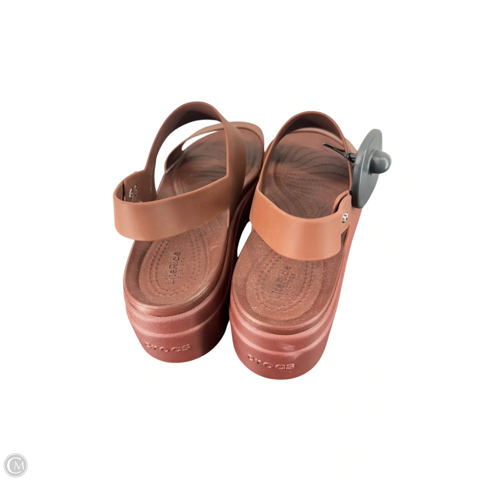 Sandals Heels Platform By Crocs In Brown, Size: 11